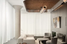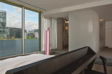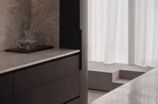 Completed in late 2024, the renovation consolidates and organizes key programmes and functions, with nuanced architectural interventions transforming the penthouse into a place of quiet intimacy and respite. The introduction of a new granite plinth ringing the penthouse's perimeter deftly manages the grade change between interior areas and the exterior terrace, while creating the impression of sunken, sheltered living spaces. A restrained material palette of wood, concrete, natural stone, and brushed metal minimizes distractions and emphasizes durability, simplicity, and honesty.