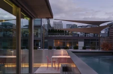 The penthouse’s wrap-around terrace, along with its relationship to interior spaces, has been reimagined. It now hosts a reflecting pond with garden, comfortable seating, a cooking counter, an intimate alfresco dining area, and a pool. Maximizing access to natural light, fresh air, and greenery further underlines the residence’s purpose as a place to unwind.