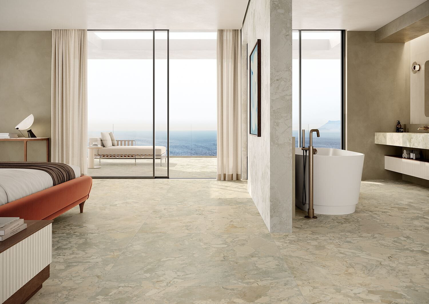 Arkigem is a porcelain tile collection that elegantly reinterprets the Ceppo di Sicilia. Its surface, rich in inclusions and refined graphic details, is available in a sophisticated color palette ideal for both residential and commercial interiors. Designed to ensure seamless visual continuity between indoor and outdoor spaces, it offers high-level technical performance and timeless aesthetic impact.