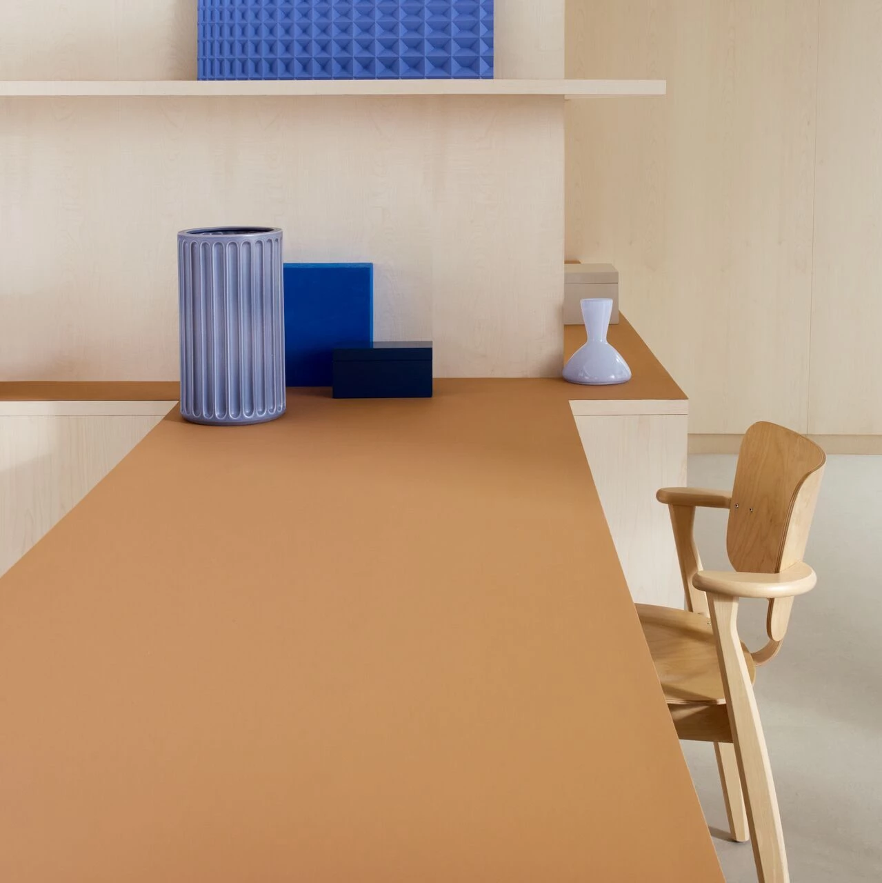 Forbo’s Furniture Linoleum, Desktop, is a natural surfacing material that delivers the finishing touch for all high end 3D furniture designs such as desks, chairs, stools, cabinets, doors and displays. The material is flexible and can be applied as a surface on all kinds of constructions.