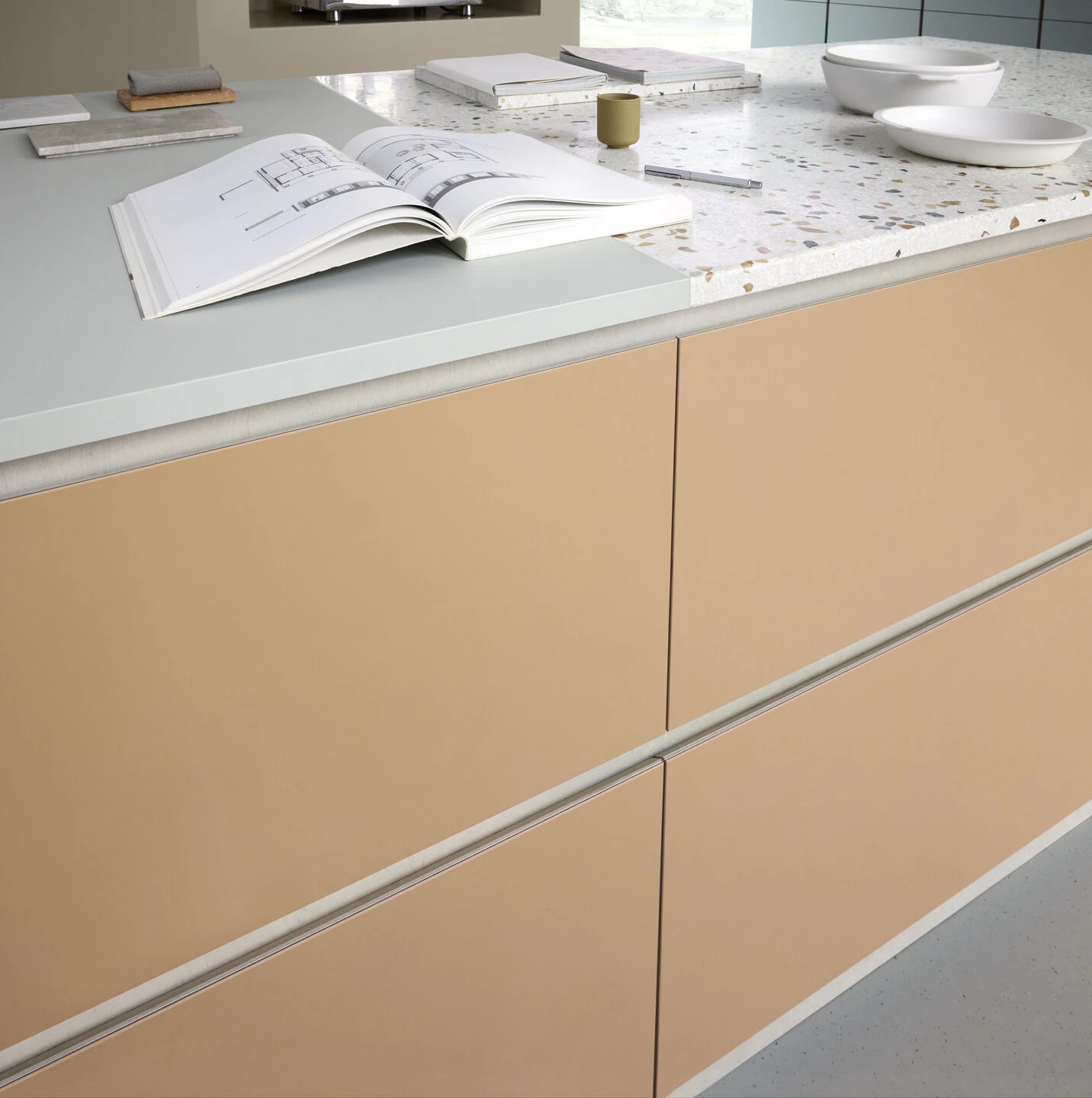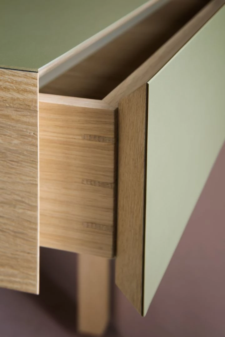 Furniture Linoleum is renowned for its elegance and durability, radiating high quality and finesse. Furniture Linoleum delivers a combination of a satin matt surface with a warm, fine texture creating interior furniture with a truly distinctive, genuinely individual look and feel that really is unlike any other surface material available. The natural character of Furniture Linoleum means that the material achieves a beautiful patina over time.